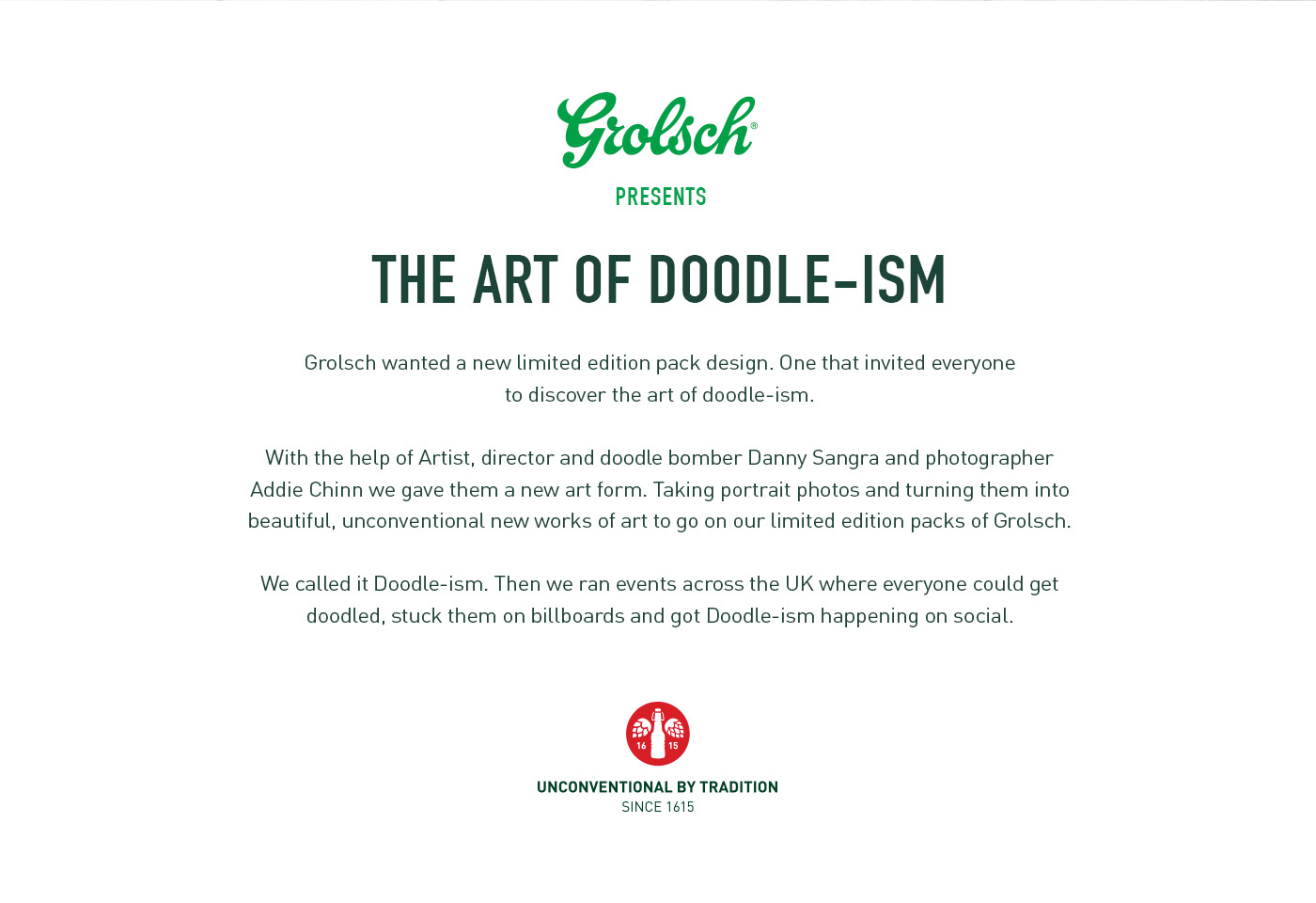 Grolsch wanted a new limited edition pack design. One that invited everyone to discover the art of doodle-ism.
