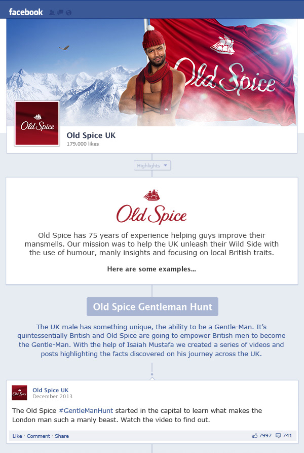 Old Spice UK / Working on a range of Facebook content for Old Spice UK including the Gentle-Man Hunt and a number of responsive and engaging Facebook posts.