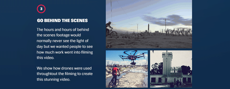 Art Direction and design for Red Bull: Epecuen microsite. Stunt biker Danny MacAskill journeyed to the abandoned Argentine town of Epecuen for his latest collaboration with Red Bull. Discover more about Danny’s epic ride through Epecuén with exclusive behind the scenes content, including production photos, trick breakdowns, location guides and fascinating facts about the forgotten city.